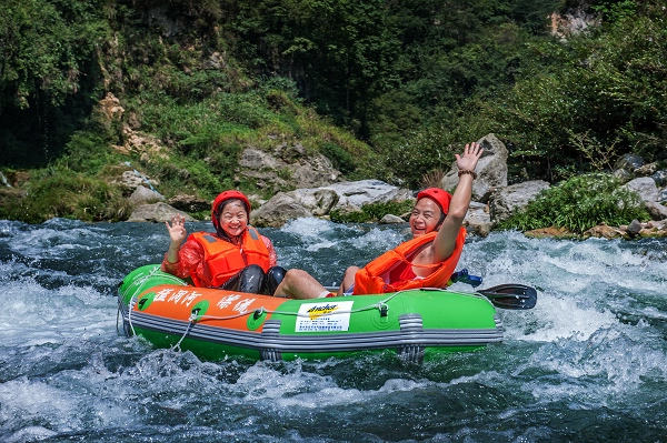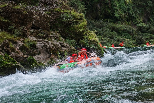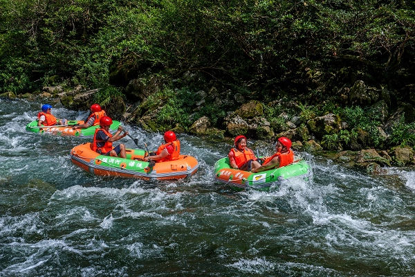 猛洞河水量豐富,河流坡降大,水急灘多浪奇,高大的峭壁直插水面,兩岸并相靠攏,形成幽深的峽谷景觀。沿河兩岸古木蒼天,蒼翠欲滴,奇石錯落,流泉飛瀑隨處可見,下游一路水碧山青,風(fēng)光秀麗,野猴成群,溶洞奇特。猛洞河天下第一漂項目位于猛洞河支流,全長47公里,最精彩處位于哈妮宮至牛路河段,長約17公里。該景區(qū)兩岸多為原始次森林,蔥蔥郁郁,水流湍急,碧綠清亮,有十里絕壁,十里瀑泉,十里畫卷,十里洞天的美譽。其中有急流險灘108處,大小瀑布20處。漂流,穿急流,越險灘,闖狹谷,捕激浪,有驚無險,回味無窮。特別是哈妮宮、三角巖、雞籠門、遇仙峽(捏土)、閻王灘、落水坑、夢思峽、鯉魚剖肚、三大炮等景點,無不令人叫絕觀止。