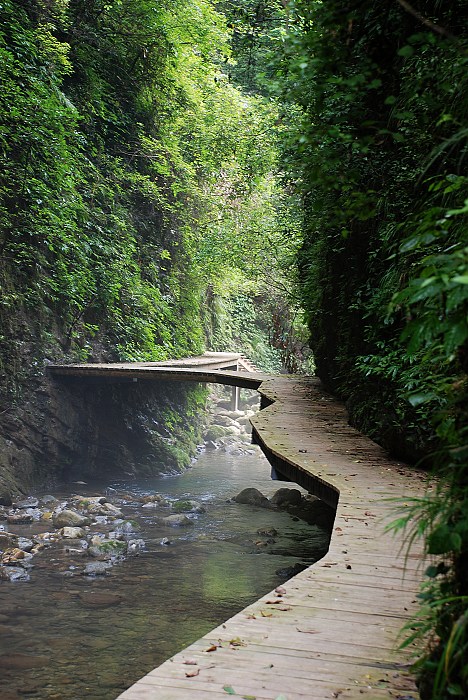 大峽谷中的飛瀑神泉比比皆是,一路游覽下來,讓人目不暇接。峽谷里植被繁茂,空氣清新,涼爽舒適,溪水上彌漫著一層薄霧,宛如來到世外桃源,讓人煩惱頓消。 張家界大峽谷峽谷間是一條清幽的小溪,沿溪邊是用木板搭建的游道, 張家界大峽谷峽谷內不僅有傳統的秀美自然風光,還云集有三朝數代的歷史人文景觀,如記錄李自成與吳三桂慘烈決戰(zhàn)的“千人墳”古戰(zhàn)場,反映湘西歷史特色的土匪洞及見證解放初期湘西人民靠天勞作在絕壁間挖鑿的“南方紅旗渠”等。