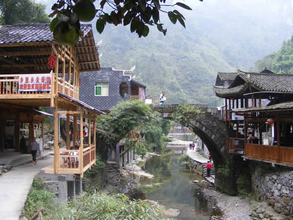 德夯風(fēng)景區(qū) 德夯景區(qū)古風(fēng)猶存,人文景觀眾多,景區(qū)到處都呈現(xiàn)著遠(yuǎn)古文化風(fēng)貌,苗寨依山而建,飛檐蹺角,半遮半掩,封火墻、雕花窗,造形奇特,格調(diào)鮮明,色彩分逞,豐富多彩,無(wú)不顯示出遠(yuǎn)古遺民的氛圍。田野里,溪河傍,終日旋轉(zhuǎn),人們用他碾米或加工紙漿,碾盤時(shí)時(shí)發(fā)出“哐鐺、哐鐺”石頭撞擊聲,以示古代文明。人們用原始的方法造紙、織布、染布、榨油。用厚重的木船擺渡,索索船隨處可見(jiàn)。人們?cè)诩线M(jìn)行交易,量具多使升、斗器具,買賣雙方在衣角內(nèi)摸手講價(jià)。景區(qū)苗民許多習(xí)俗稀奇古怪,難以用語(yǔ)言敘述。這里的一切都顯示著原始古老,與大山外面的現(xiàn)代城市形成了鮮明對(duì)照,因此,聞之而來(lái)的旅游者、古文化研究者紛至而來(lái),絡(luò)繹不絕,探索者成千上萬(wàn)。
