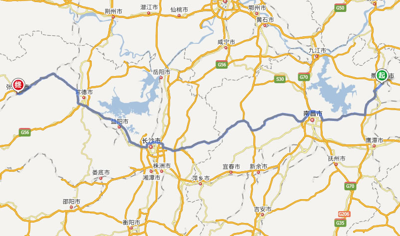 景德鎮(zhèn)去張家界自駕車自助游線路圖全程高速):
