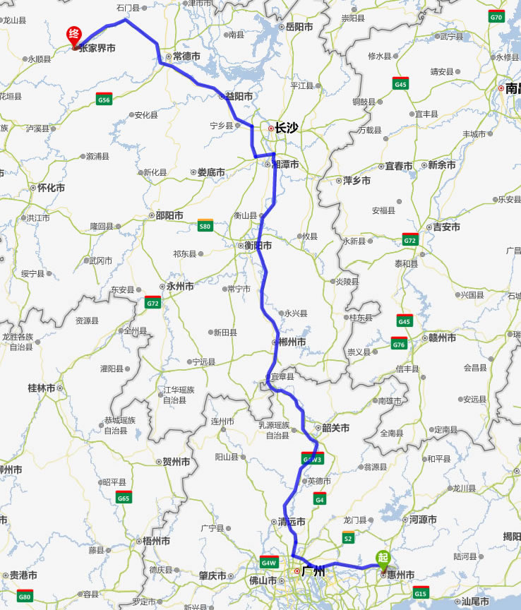 番禺去張家界自駕車自助游線路圖全程高速):
