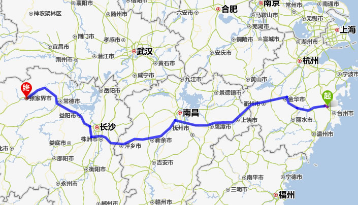 現(xiàn)在位置:張家界旅行社->交通指南->自駕車(chē)路線(xiàn) -> 臨海到張家界旅游自駕車(chē)線(xiàn)路,臨海去張家界自己開(kāi)車(chē)要多長(zhǎng)時(shí)間,有多少公里