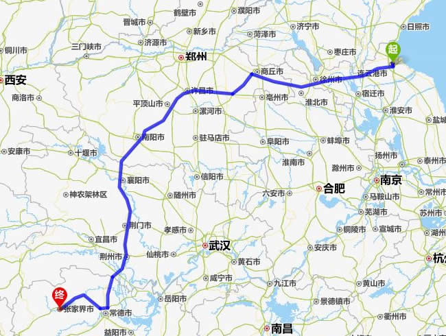 連云港去張家界自駕車(chē)自助游線(xiàn)路圖全程高速):