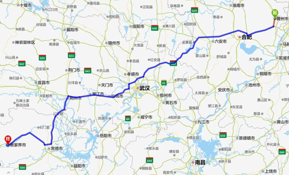 滁州去張家界自駕車自助游線路圖全程高速):